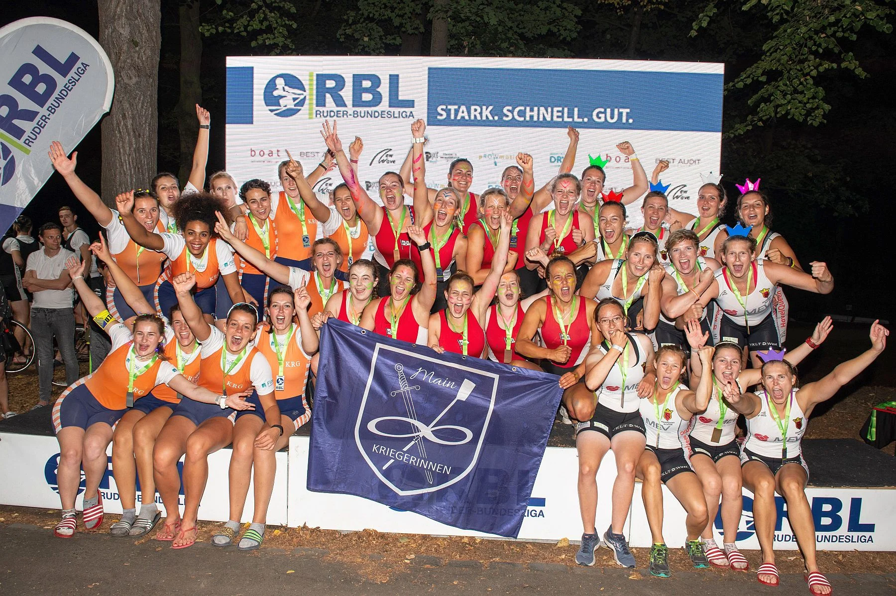 Dieser Renntag in Leipzig wird unseren Mädels vom "FlowWaterjet Ruhr-Achter" noch lange in Erinnerung bleiben. Er war reich an Emotionen, Erfahrungen und Erlebnissen. Die gute Vorbereitung sollte sich gelohnt haben. Zum Auftakt dieses "PLANAT Renntages" in der Elsterflutbett-Arena gewann das Team um Steuerfrau und Team-Captain Hanna Müller erstmals in der Geschichte das Zeitfahren. Der Dauersieger "Melitta Minden Team Red" landete nur auf dem vierten Rang. Am Ende ging es für den Tabellenführer sogar noch einen Platz runter, sodass Minden den Renntag auf Platz 5 abschloss. Vorne marschierte unser Achter ohne Mühe bis ins Finale. Dort traf man mal wieder auf den Dauerrivalen, die Main-Kriegerinnen aus Hanau, die man im Zeitfahren und bei den letzten beiden Renntagen in Werder und Minden besiegen konnte. Vor der überwältigenden Kulisse von 25.000 Zuschauern erwischte der "FlowWaterjet Ruhr-Achter" im Flutlicht einen guten Start. Auf den letzten 50 Metern hatten aber diesmal die Hessinnen den längeren Atem und gewannen hauchdünn mit einem Vorsprung von 14 Hundertsteln dieses Finale. Nach kurzer Enttäuschung, weil man den Sieg schon vor Augen hatte, war die Freude riesengroß. Es war das bis dato beste Saisonergebnis, welches im Anschluss bei der „AfterRowParty“ in der Moritz Bastei bis in den frühen Morgen gefeiert wurde. Damit liegt Hanau und Kettwig punktgleich auf dem 3. Rang. Der 5. und zugleich letzte Renntag dieser Saison im baden-württembergischen Bad Waldsee wird am 8. September die Entscheidung bringen.